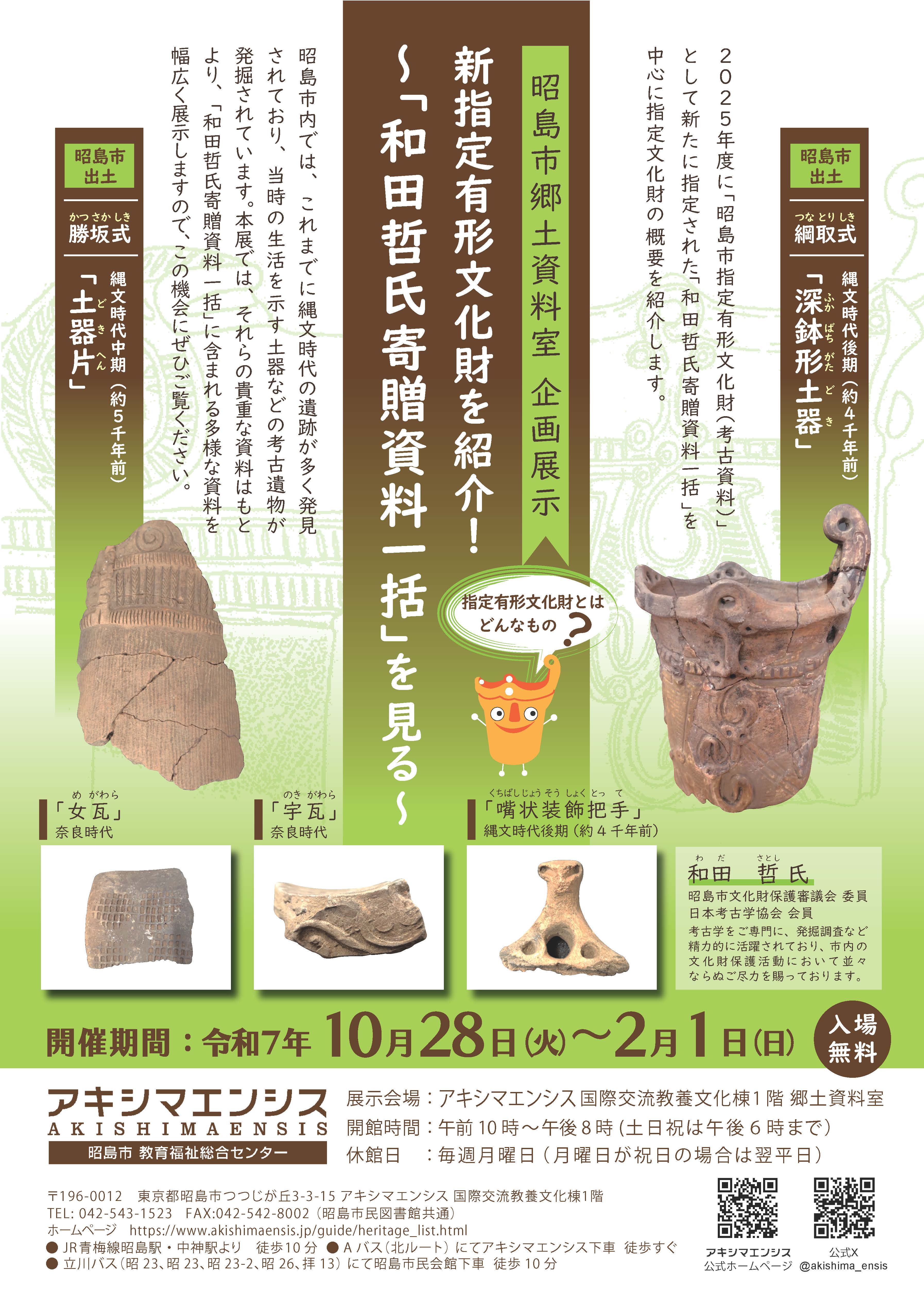 - 企画展「アキシマの縄文時代:和田哲氏寄贈資料展」